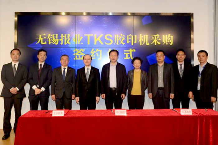 ????????2018年11月6日,無錫報業(yè)發(fā)展有限公司進口彩色輪轉報紙印刷機項目的簽約儀式在無錫新傳媒發(fā)布廳舉行。我司與無錫報業(yè)發(fā)展有限公司及株式會社東京機械制作所合作的外貿、進口代理協(xié)議順利簽約。